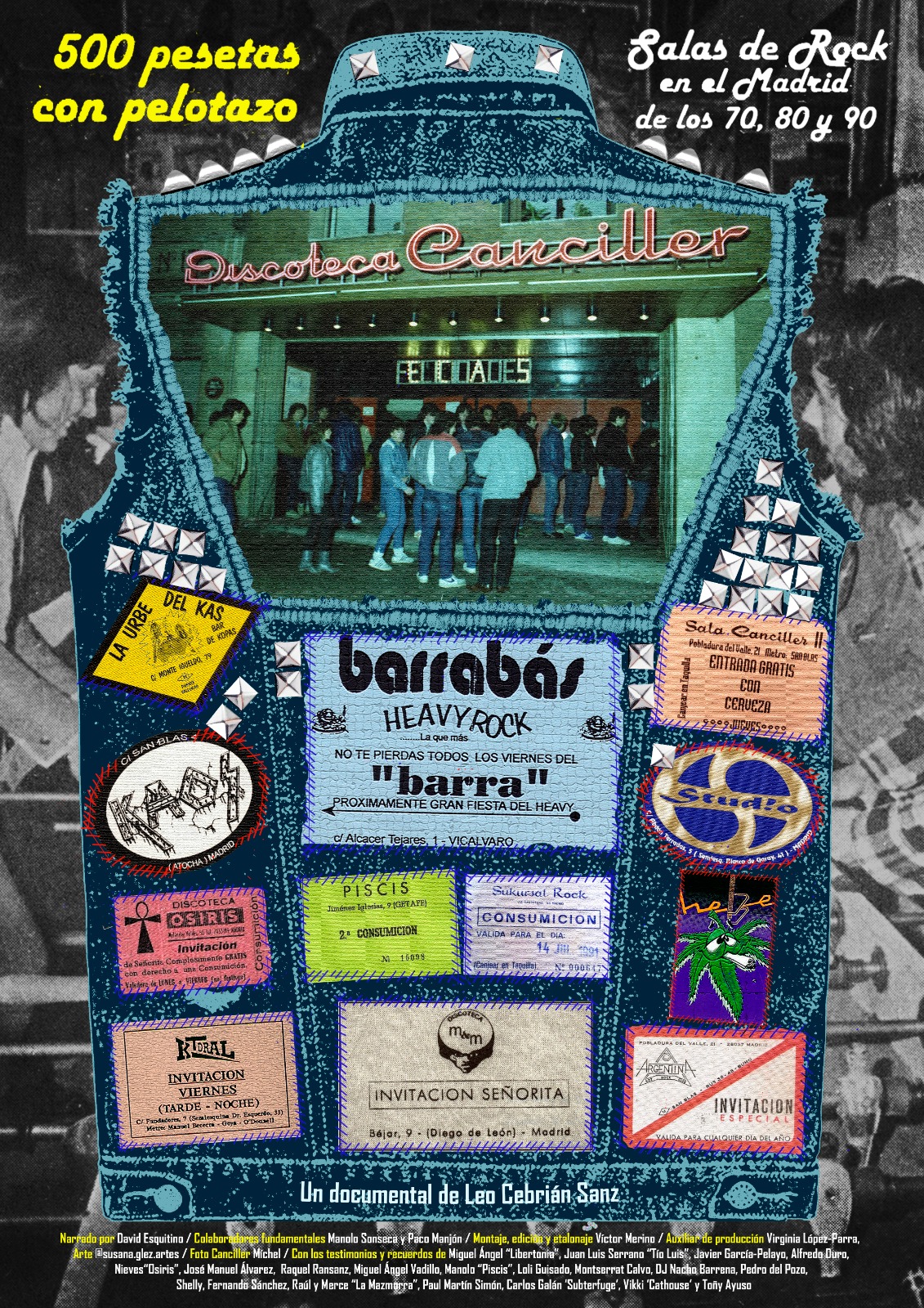 En la selección de personas entrevistadas se ha incluido a clientes y clientas habituales de las propias discotecas, reflejando así el variopinto espectro de quienes las frecuentaban con una fidelidad casi religiosa. Profesionales de la música y la comunicación se mezclan con los “fijos” que no faltaban cada semana a un rito de iniciación y temprana madurez estrechamente vinculado al éxito del Rock Duro en España y especialmente Madrid, donde más allá de la M30 también había mucha agitación cultural. “500…” es pues la historia de lo que no contó la historia oficial.