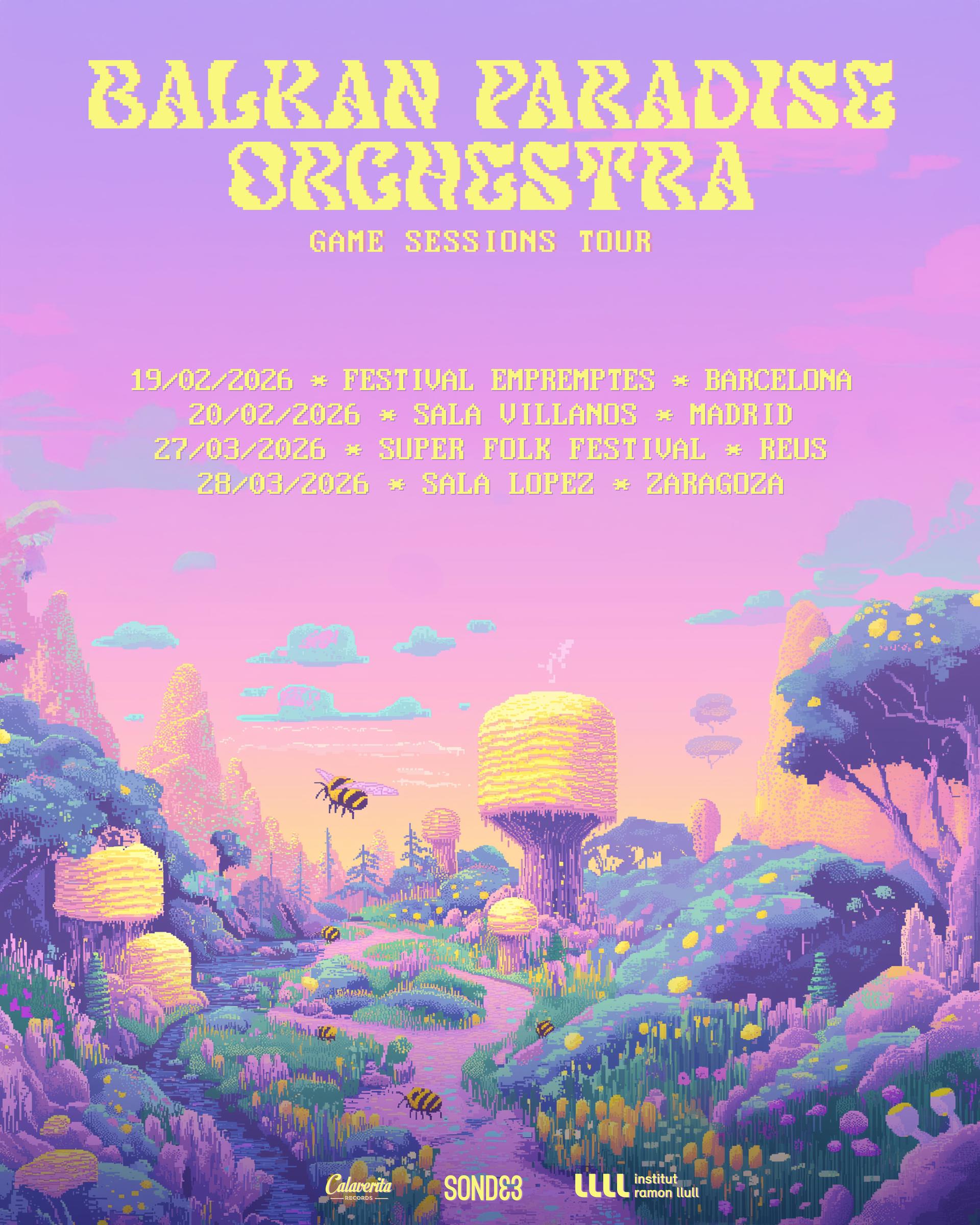 En 2026, Balkan Paradise Orchestra inicia la gira de conciertos Game Sessions Tour, con unas primeras fechas de estreno en Barcelona (Festival Huellas), Madrid (Sala Villanos), Zaragoza (Sala López), Torrent (Brassurround) y Reus (Super Folk Festival).