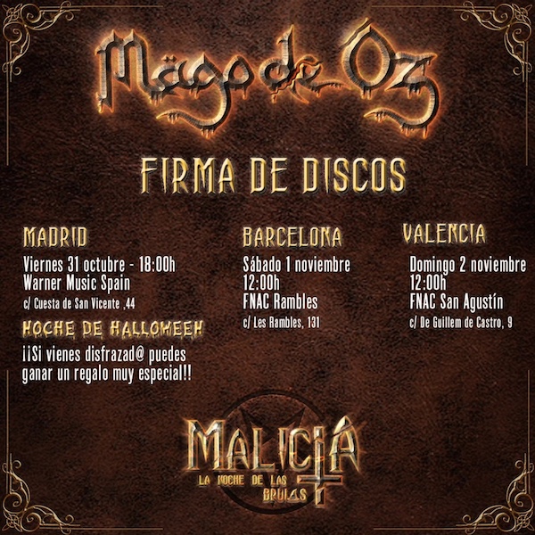 Para celebrar esta nueva etapa, la banda ha anunciado una serie de firmas de discos durante este fin de semana en Madrid, Barcelona y Valencia. Será una oportunidad única para que los fans puedan conocer al grupo, conseguir su copia del álbum y compartir de cerca la magia que siempre ha caracterizado a Mägo de Oz.