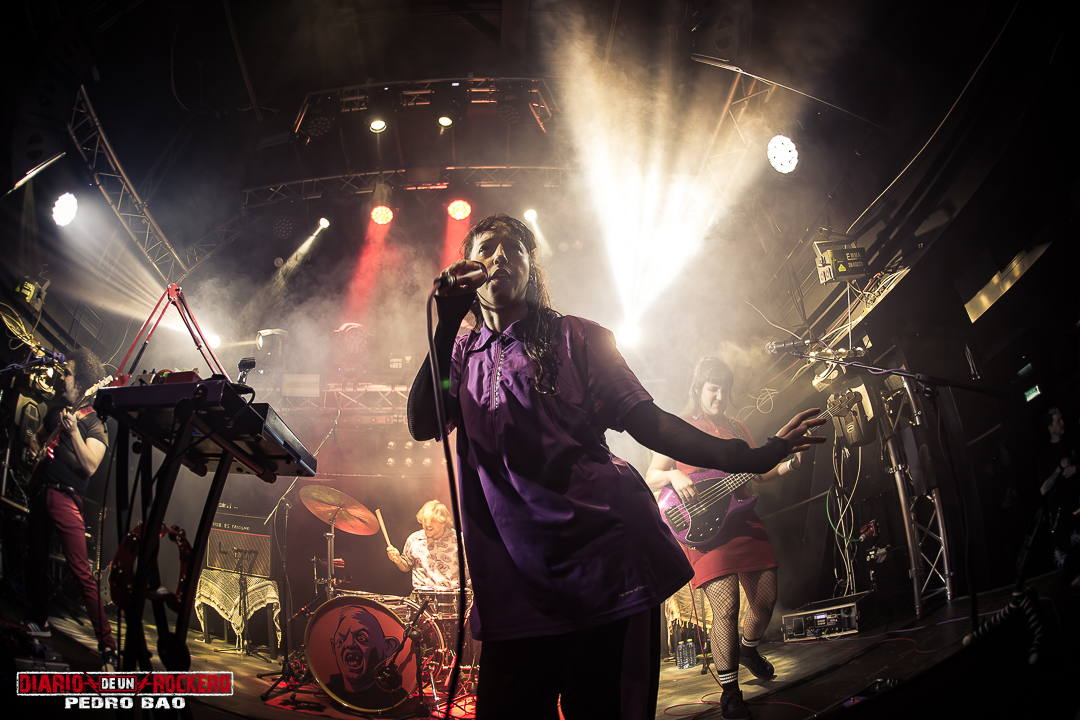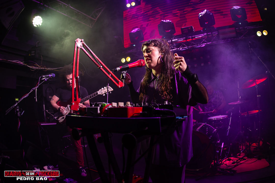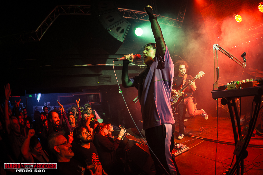 Después pasaron a la parte final del concierto con cinco temas más del disco «Todo Mal». Con la llegada de «Morse» el público no dudó ni un segundo en cantar el estribillo. Y en «Desde El Río Hasta El Mar» pudimos disfrutar de la sonaja en manos de Nuria Furia. Por otra parte, destacamos «Salem», porque es uno de los más queridos, que pidió el público a gritos. Y fue presentando con unas palabras muy especiales de Nuria: «A todas mis amigas, mis hermanas y las mujeres que sufren», momento en el que se emocionó entre lágrimas. Después de este instante, felicitaron a su manager, quien cumplía años. Le hicieron un regalo muy especial. Le entregaron un ramo de flores. En ese instante el concierto estaba llegando a su fin.