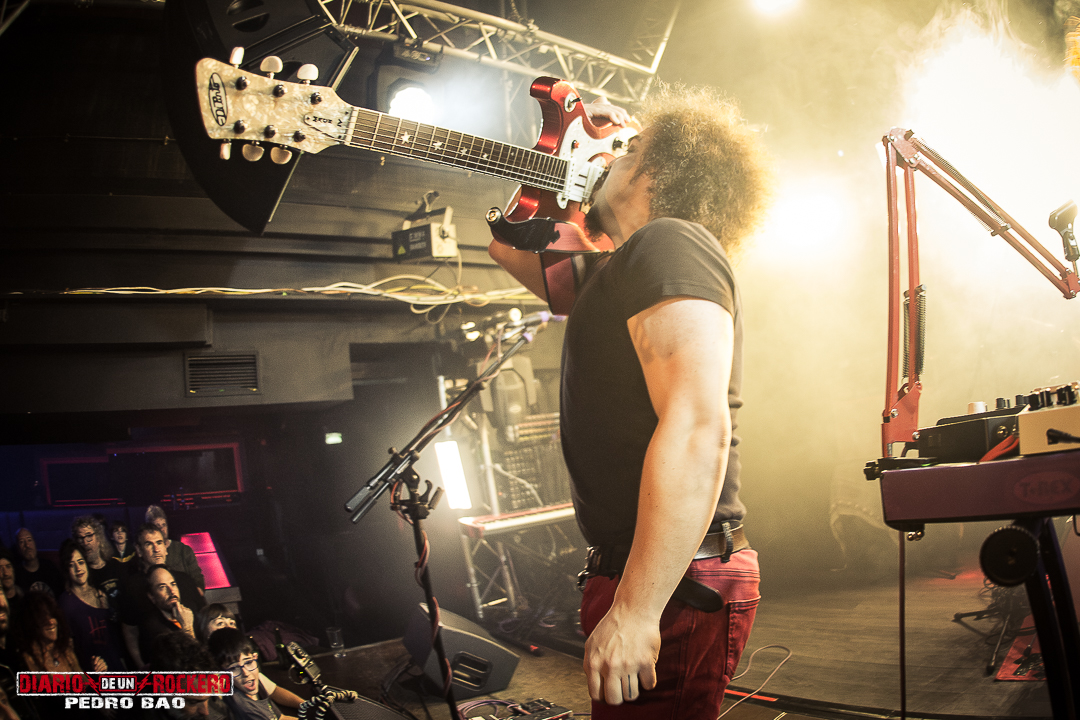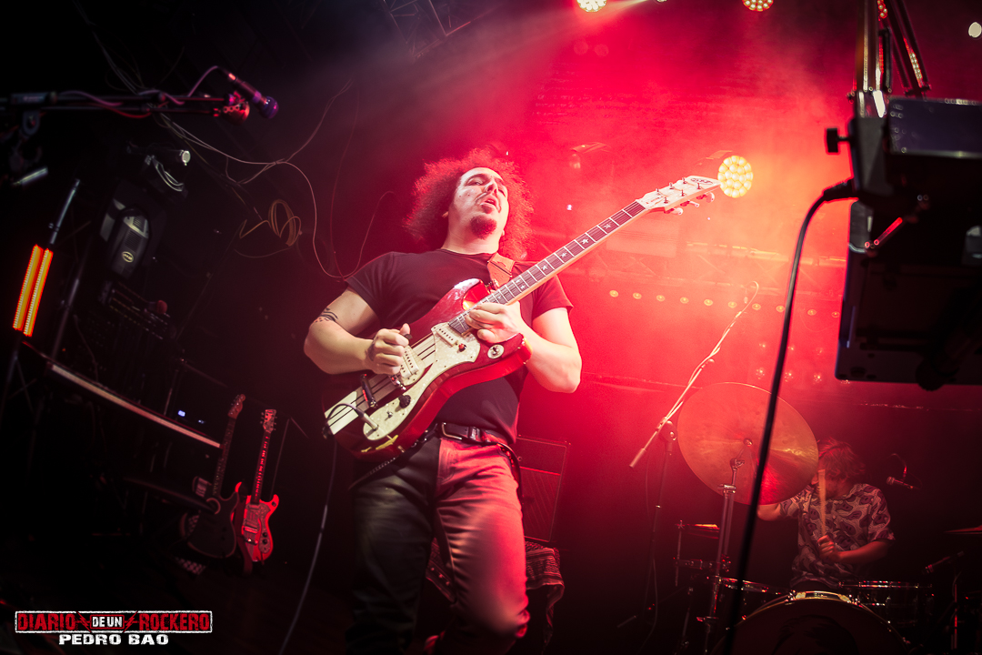 Y ahora pasamos a centrarnos en el concierto. En primer lugar, dio comienzo de manera puntual, a la hora prevista, y una hora después de la apertura de puertas, es decir a las 21:00 horas. Y además, entorno a unas 300 entradas vendidas, empezaba una noche cargada de buenas vibraciones con Hermana Furia y un público generoso. Arrancaba con una intro en la que se sucedían unas imágenes en la pantalla situada encima del escenario, con interferencias que nos llevaba a la portada del disco a presentar, y llevándonos en un viaje espacial temporal de un agujero de gusano por un túnel. De pronto un as de batería dio paso a un solo, para dar paso al inicio con toda la banda ya sobre el escenario, mientras se sucedía el primer tema de la noche que no fue otro que «Grita Con Furia». Después de esta entrada genuina, saludaban: «¡Buenas tardes somos Hermana Furia!». Y la euforia del público se apoderó de la sala. Pero de pronto llegó «Matar A Alguien», donde el funky y el stoner se se hacían con el control de esta canción, y el bajo de Pau C. Marcos contaba con partes más rítmicas. Y finalmente los allí presentes terminaron entre aplausos. Seguidamente le tocó el turno a «Dame Vida», otro de los temas su primer álbum título «Todo Mal», como los anteriores. Pues aquí pudimos ver a Edu Molina ganando más protagonismo a la voz. Este iba cogiendo forma con dinamismo y movimiento.