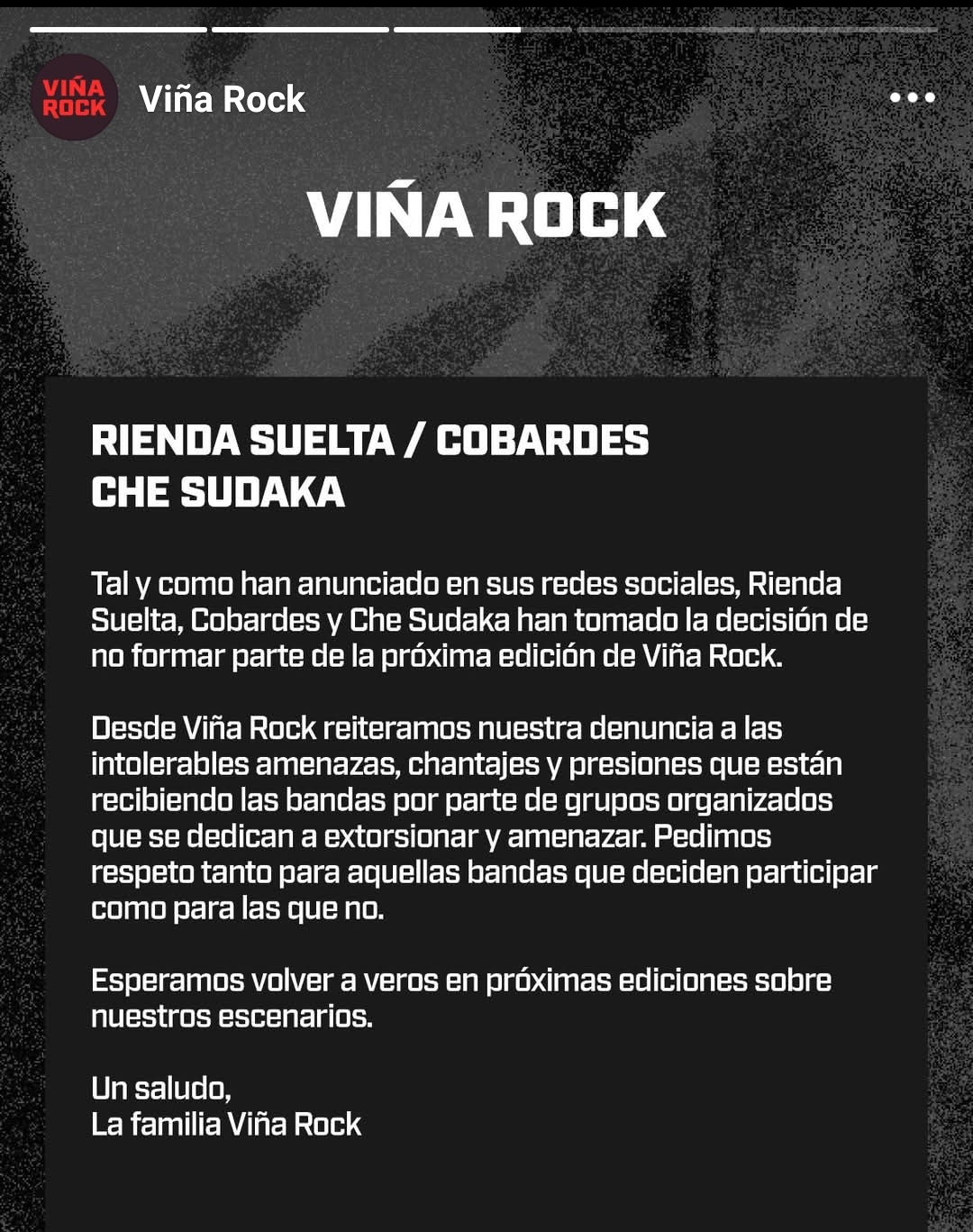También, otra banda de renombre y muy conocida en nuestro país como es Sôber, y tras todo el revuelo que se ha formado con el Viña Rock, por hacerse publico en las noticias, quien anda detrás de su financiación, se han posicionado y han informado en sus redes sociales en un comunicado, que tampoco van a ir en 2026 al festival. Así lo han explicado:
