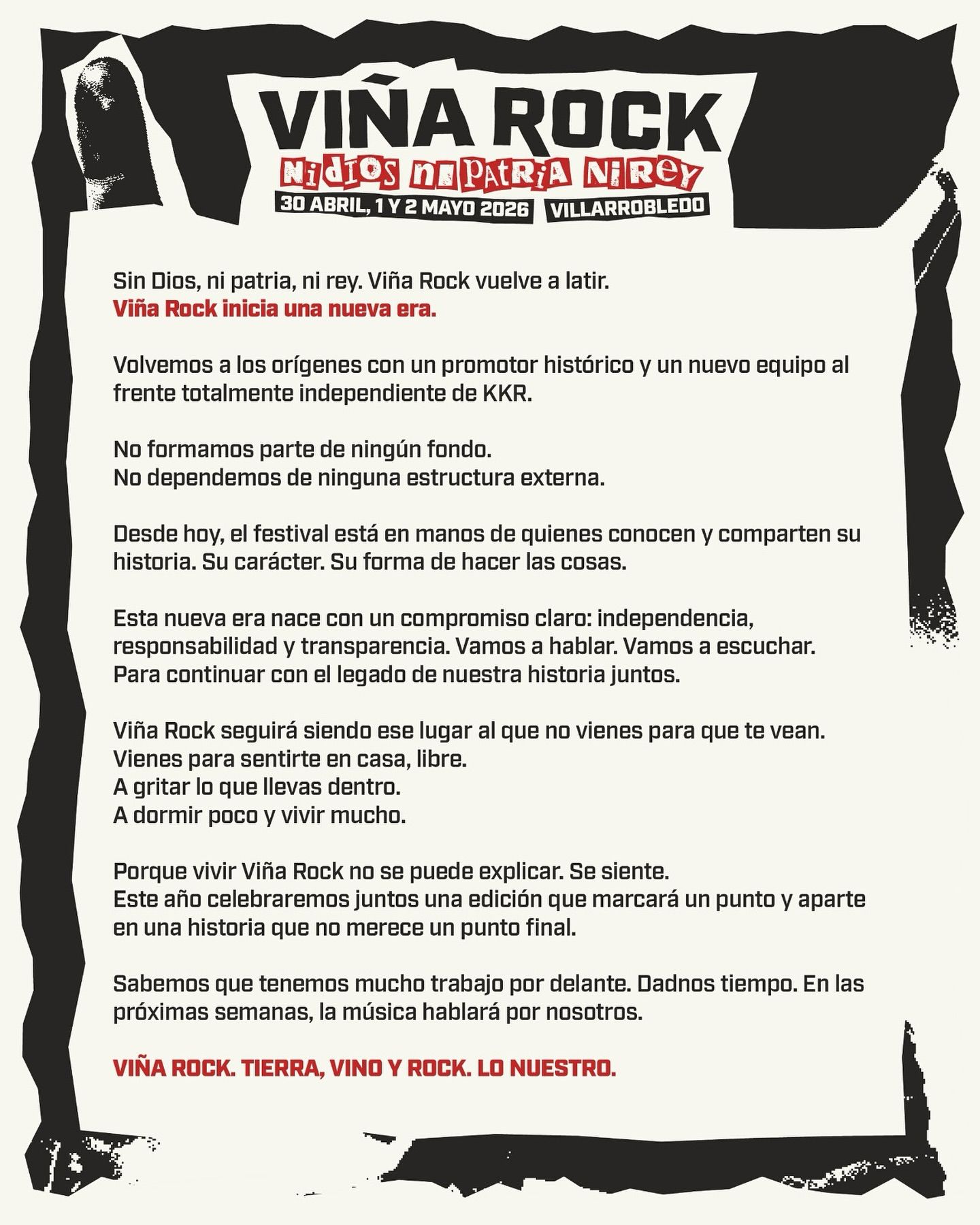 En este escenario, Viña Rock se enfrenta a uno de los momentos más decisivos de su historia. El éxito de esta nueva etapa dependerá en gran medida de la transparencia con la que se comuniquen los próximos movimientos: nuevo cartel, estructura organizativa y garantías de independencia.