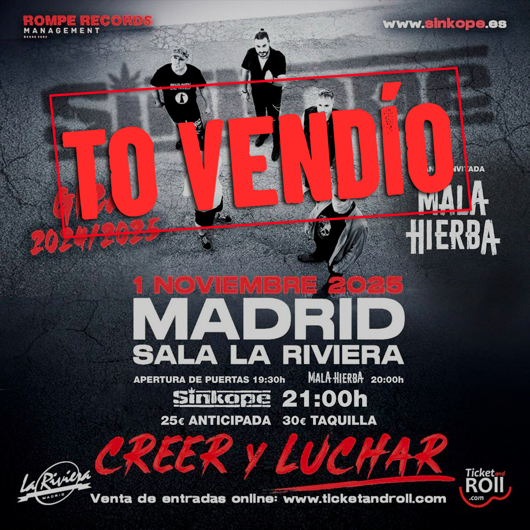 La mítica banda extremeña de Rock Sínkope continúa demostrando su fuerza y conexión con el público. Este sábado 1 de noviembre, el grupo pondrá el broche final a la primera parte de la gira de presentación de su último trabajo discográfico, “Creer y Luchar”, con un concierto muy especial en la emblemática sala La Riviera de Madrid.