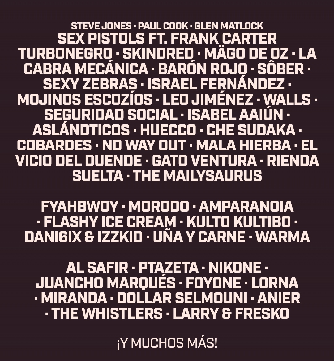Tras el anuncio realizado el pasado 9 de diciembre, Viña Rock ha presentado el primer avance de artistas que participarán en la próxima edición del festival. Entre las bandas confirmadas se encuentran Mägo de Oz, Sôber, Amparanoia, Gato Ventura o Sex Pistols, entre otros nombres destacados.