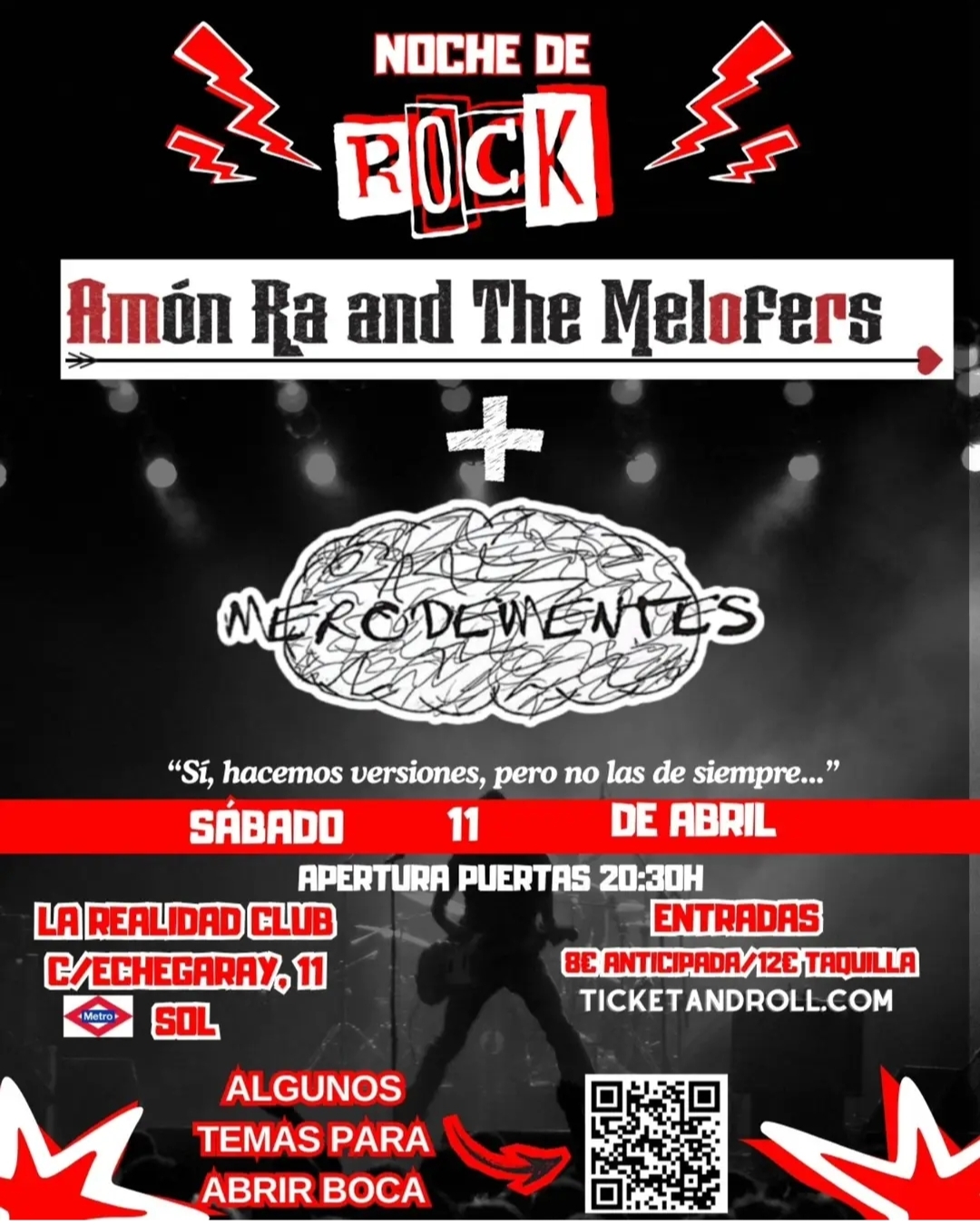 El próximo sábado 11 de abril viene consigo una noche de Rock de la mano de Amón Ra And The Melofers y Merodementes en La Realidad Club.