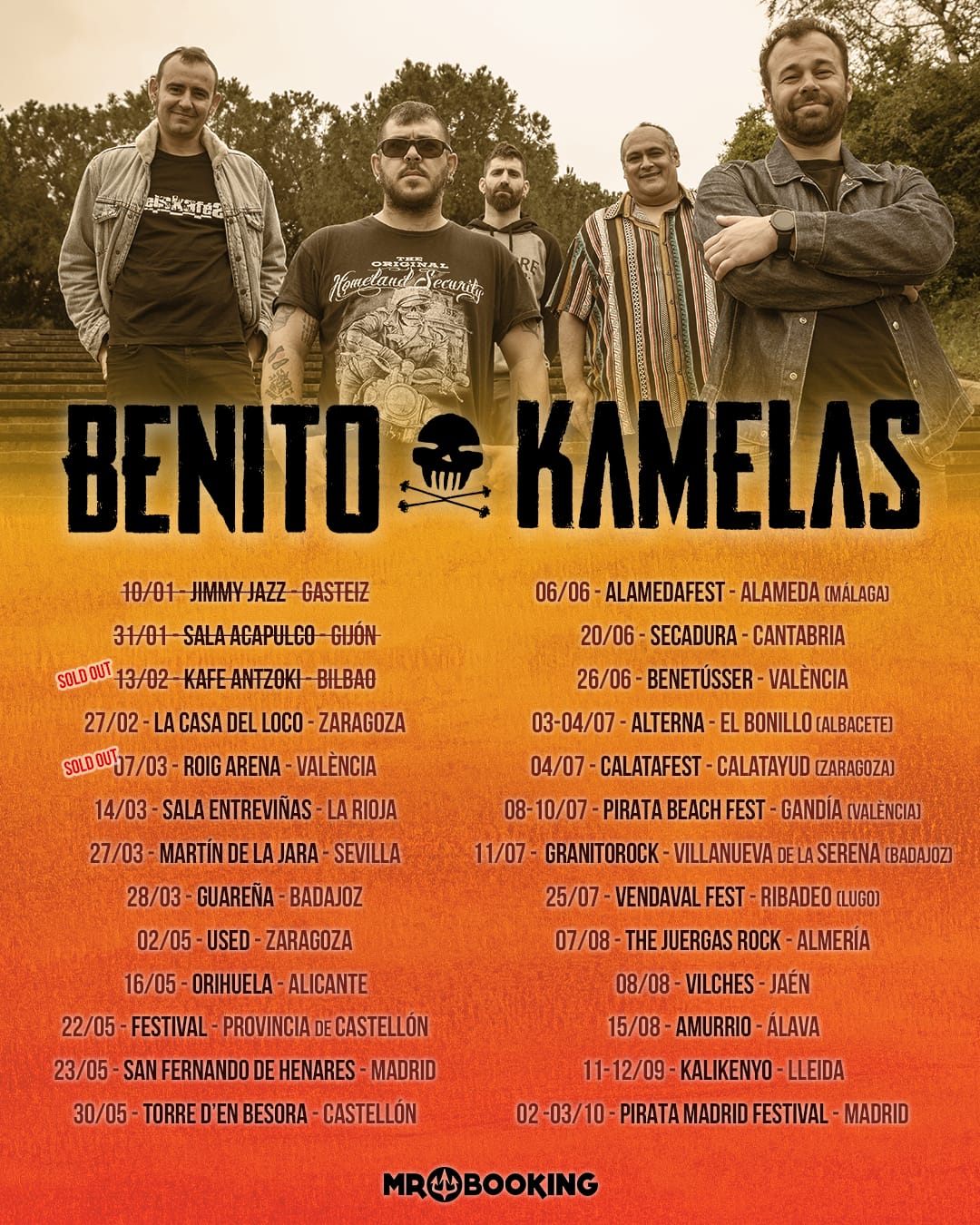 Benito Kamelas encara 2026 con una de las giras más ambiciosas de su trayectoria. El grupo, referente del rock urbano español, ya tiene confirmadas 26 fechas repartidas por toda España, consolidando así su posición como uno de los directos más potentes del panorama nacional. La expectación es máxima entre sus seguidores, especialmente tras conocerse que han logrado agotar las entradas en el emblemático Roig Arena de Valencia, un logro que confirma el excelente momento artístico que atraviesa la formación.