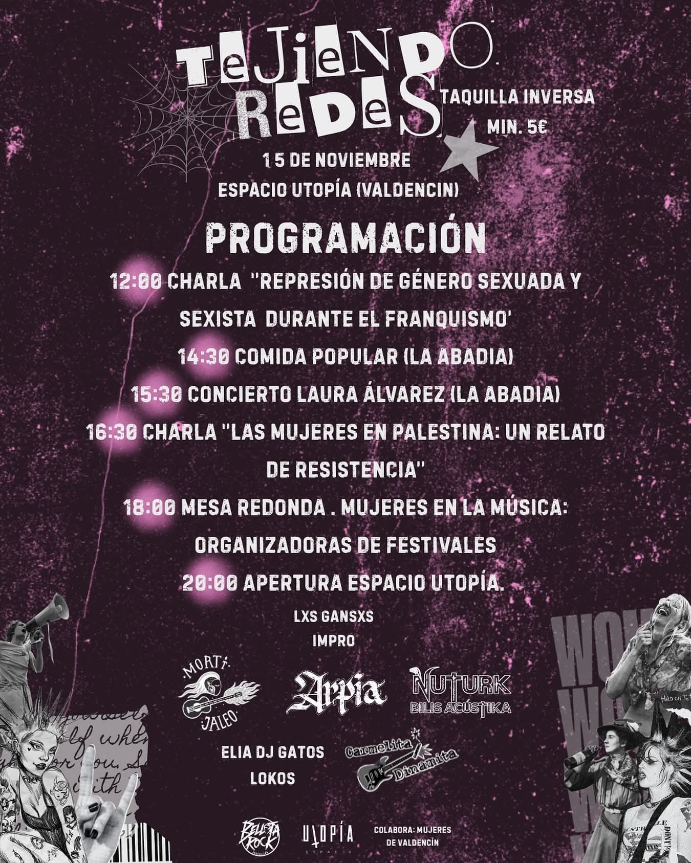 El próximo 15 de noviembre, la localidad cacereña de Valdencín acogerá la tercera edición del Festival Tejiendo Redes, un evento pionero en la puesta en valor de proyectos artísticos femeninos en Extremadura. La cita, organizada por la Asociación Bellota Rock en colaboración con la Sala Utopía y el colectivo Mujeres de Valdencín, ofrecerá una completa jornada de actividades culturales, música en directo y espacios de reflexión.