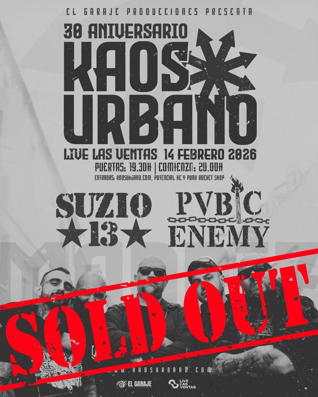 Además, la banda no estará sola en una noche tan señalada. El escenario se llenará de amistad y complicidad, ya que Kaos Urbano estará rodeado de amigos y amigas que han sido parte del camino o que comparten la misma filosofía musical y vital. Para este aniversario tan especial, contarán con la compañía de Suzio13 y PVBIC Enemy, dos nombres que aportarán todavía más fuerza, actitud y significado a un cartel que ya es histórico.