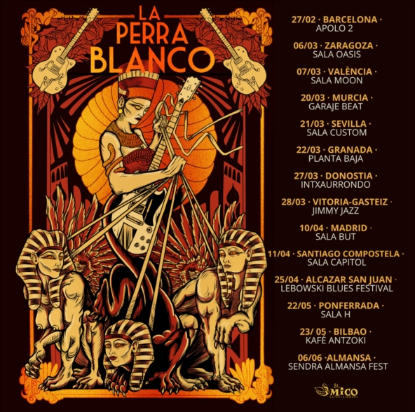 Con Guillermo González (contrabajo), Jesús López (batería) y Gerard Vercher (teclado y saxo), La Perra Blanco llevará su directo explosivo por toda España durante la primera mitad de 2026.