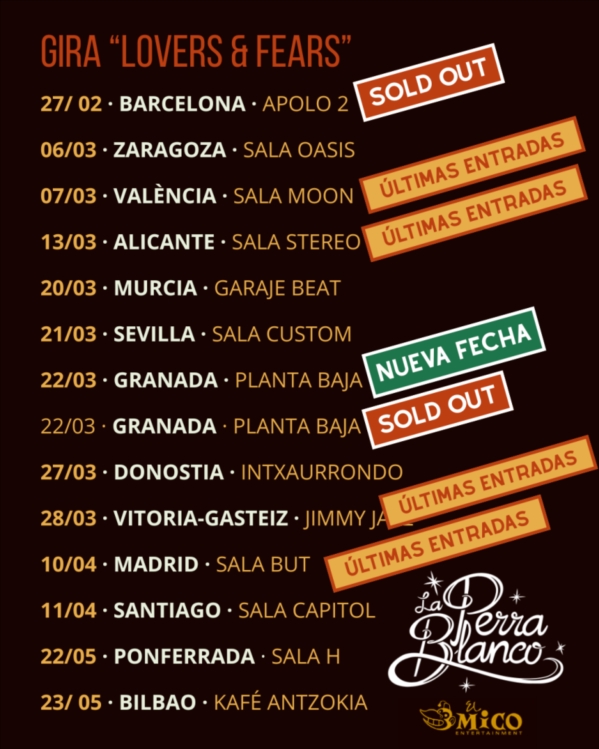 Barcelona ya ha agotado localidades. Varias ciudades están a punto de hacerlo. «Lovers & Fears» no solo está marcando un nuevo techo discográfico para la banda: está confirmando que La Perra Blanco es, hoy, una de las propuestas más fuertes del rock nacional en directo. El momento es ahora.