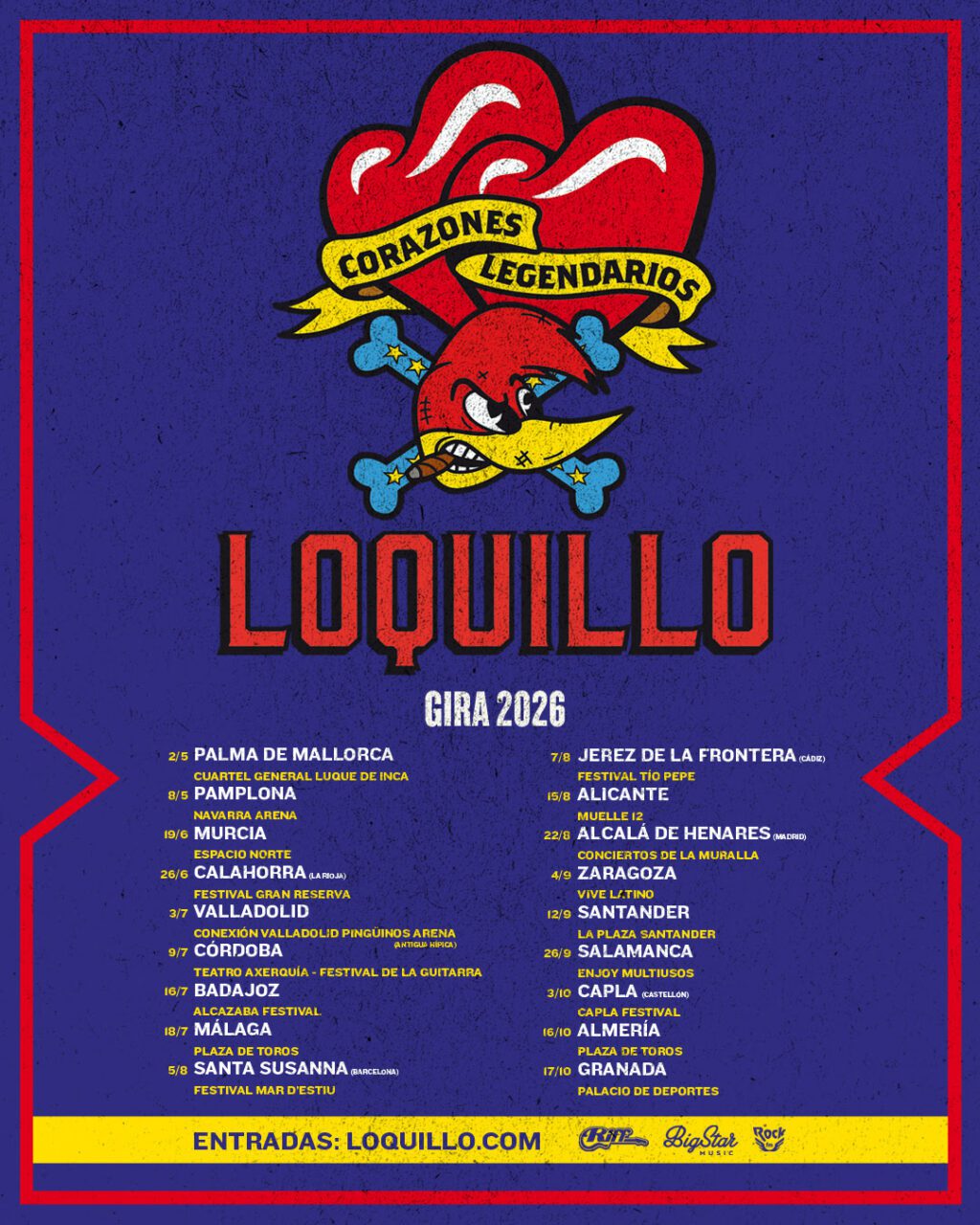 Con esta gira, Loquillo reafirma su posición como una de las figuras más influyentes del rock en español, ofreciendo un espectáculo que combina clásicos, nuevas canciones y una puesta en escena a la altura de su legado. Sin duda, “Corazones Legendarios” será uno de los grandes acontecimientos musicales de 2026.