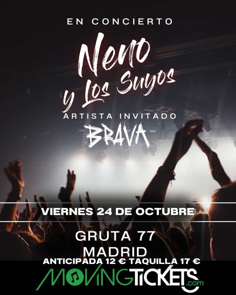 El próximo viernes 24 de octubre Neno y Los Suyos ofrecerá su próximo concierto en Madrid junto a Bravas, que se llevará a cabo en la sala Gruta77.