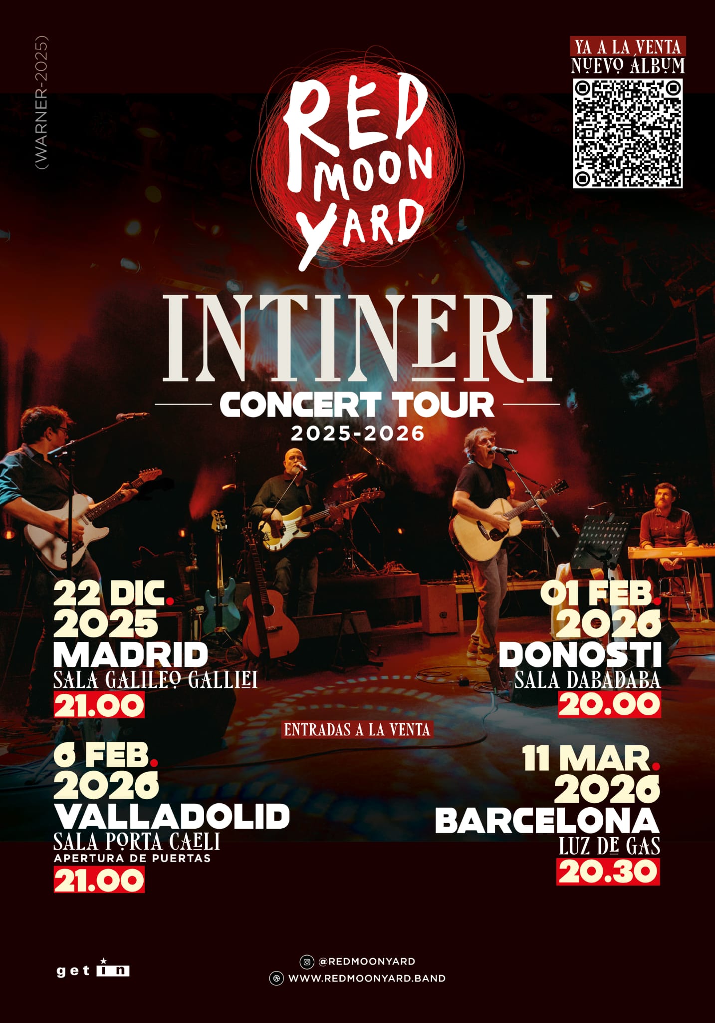 Arranca Intineri Tour de Red Moon Yard en el que presentarán sus nuevas canciones, y recordarán algunas de su anterior disco, “Pureland”. Será el próximo lunes 22 de diciembre a las 21.00h en la Sala Galileo de Madrid.