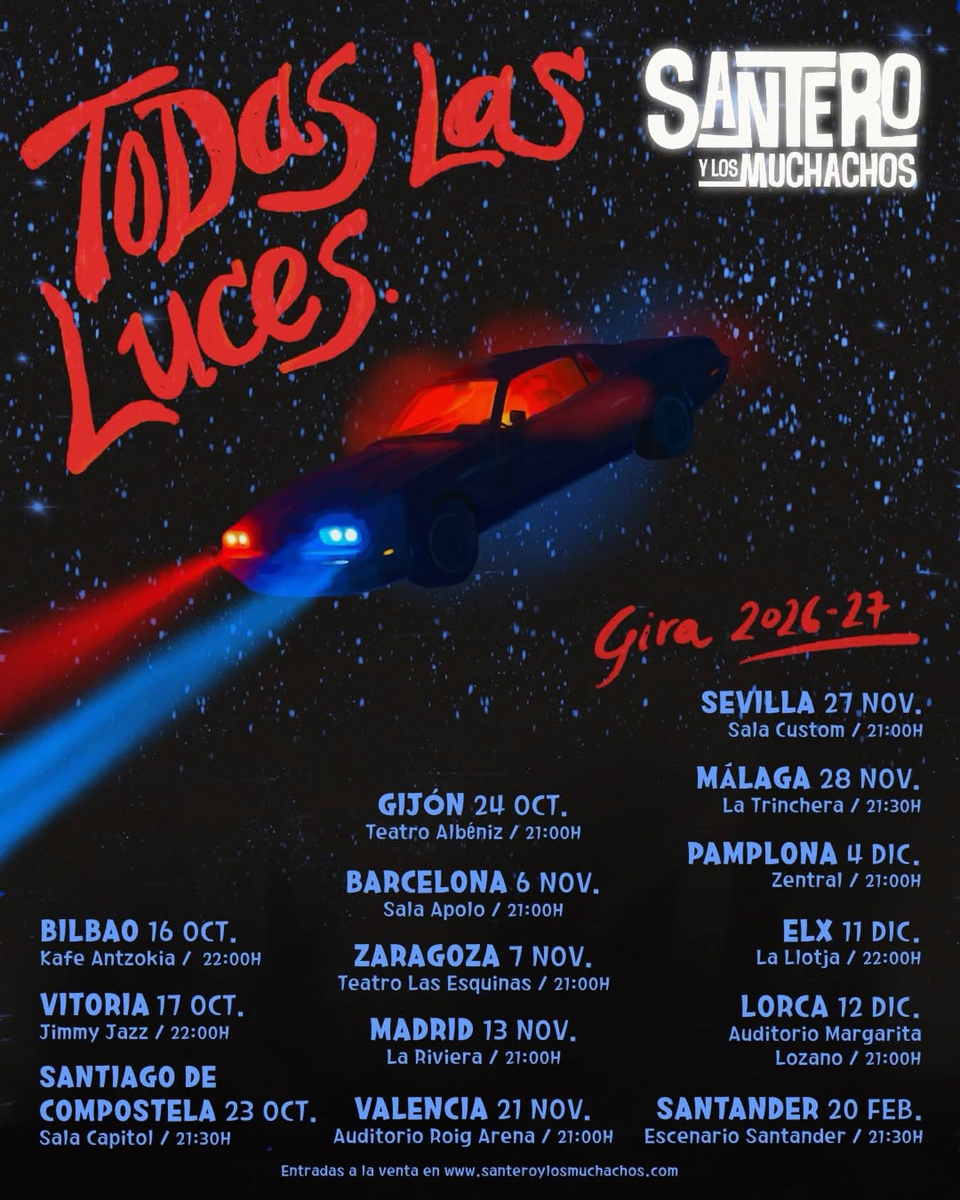 Santero y Los Muchachos han anunciado una nueva gira para 2026–2027, centrada en el lanzamiento y presentación en directo de su nuevo álbum «Todas las luces».