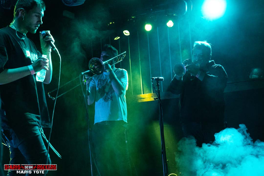 En una canción Oscar y Lluis (Voz) se sentaron en el escenario junto a su público, se tumbaron en el suelo y en cuanto cogieron aire se pusieron a cantar bajo el escenario dándose un baño de masas. Otro gran momento fue el beso entre Lluis y Jota (guitarra) aplaudido en la sala. Y sin olvidarnos de Dani (trombón) y Manu (trompeta) dándole ese toque ska, los riff de Salva (guitarra), los ritmos de Rixi (batería) y el groove de Vincen (bajo).