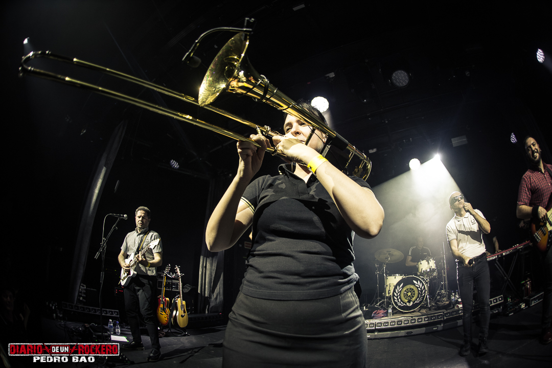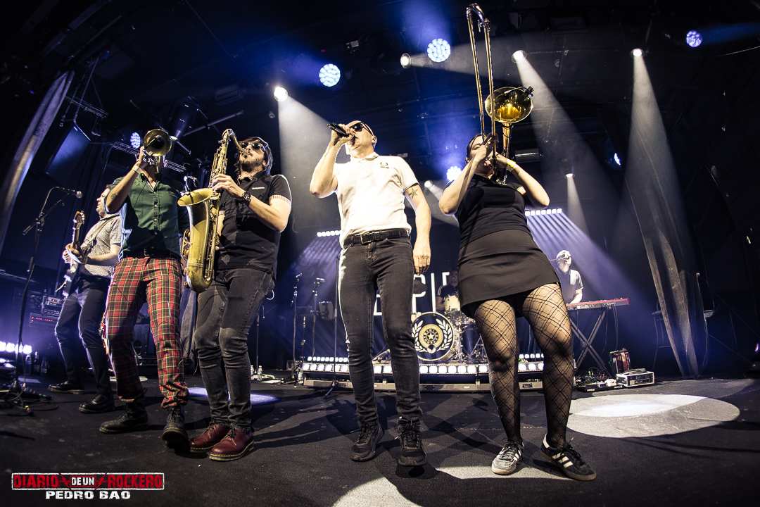 Y llega el turno de la traca final: los bises. Suena “Too much pressure” de The Selecter (Muy de agradecer es la inclusión de estos homenajes de Juantxo a nuestros grandes ídolos del ska), el sampler que precede a la archiconocida “Sarrera II”, que levanta una nueva ola de “lolololos”. La trepidante y animada “Puto alcohol”, “Phoenix city” reconvertida en “Madrid city” y “Sólo vivir”. No faltó el momento en el que tanto banda como presentes guardan un relativo silencio, se sientan en cuclillas unos instantes para sentir el impulso de saltar todos a una y seguir cantando y bailando. Y para terminar, la que acostumbra a ser el fin de fiesta: “Rudi not dead” del álbum “Rudi Récords”, que deja claro que aunque cambien las modas y las épocas, la resistencia identitaria de los Rude boys se mantendrá en el tiempo.