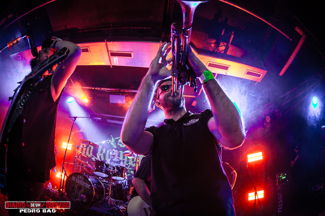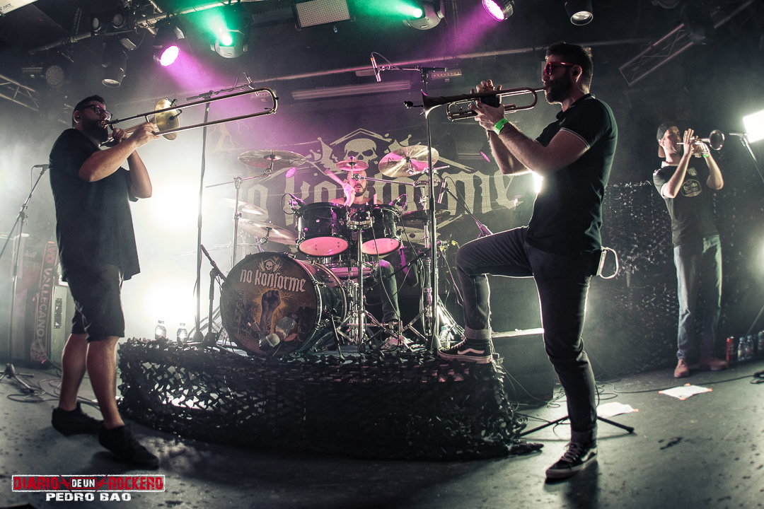 No Konforme llegó a escena después de una intro. Tras esto, los músicos fueron entrando poco a poco al escenario. Después arrancó el primer tema, «Tambores de Guerra», primer adelanto que presentaron el año pasado, antes de la publicación de su nuevo disco «Rayo Que No Cesa», lanzado en diciembre de 2025. Y lo que resalto del videoclip es que puedes disfrutar de Sergio Luna, ya que a día de hoy se ha tomado un descanso con la banda. Encontramos un formación algo cambiada, ya que al bajo actualmente se encuentra Dani Dodge, y a la batería está Pinky. Además, ahora, cuentan con un segundo trompetista, Iago Aspas, lo que ha hecho que la sección de vientos metal se haya reforzado al ser tres: un trombón y dos trompetas. La actuación duró entorno a 1 hora y media. Y es que para una sala de un aforo de 800 personas, allí encontramos entre 300-500 asistentes.