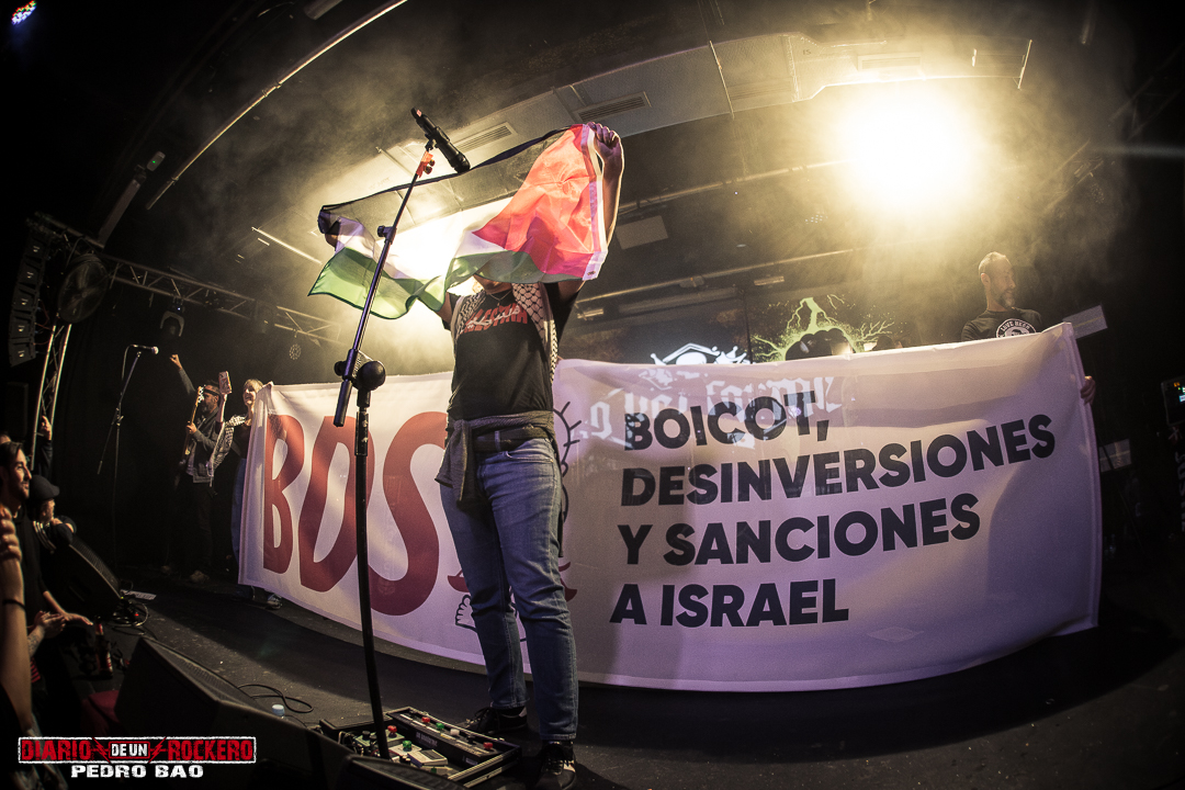 También hay que destacar la aparición de la Asociación BDS Palestina, que salió al escenario para llevar acabo unas proclamas y manifestarse en contra de la guerra en Gaza. Además comentaron que el sábado 21 de marzo hay una manifestación en Madrid a las 18:00 horas con el lema de No A La Guerra. También hay que señalar que, Bauer cumplía años. Sus compañeros le prepararon una sorpresa, una tarta con las velas de los 46 años, para que las soplara in sitio, sobre el escenario. Así fue la celebración de su cumpleaños. También hicieron alusión a la presentación de su nuevo disco «Rayo Que No Cesa».