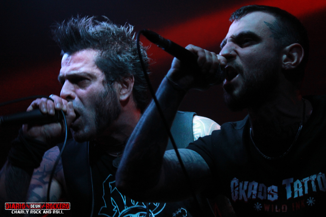 Antes de meternos de lleno en su descarga, pudimos ver el directo de Núcleo Terco que se encargaban de abrir la velada de manera contundente, haciendo sudar a los que estábamos reunidos. Su brutalidad salvaje a base de temas certeros e intensos, hizo que la banda facturarse una brillante y acelerada actuación, y aunque eché de menos un poco de dinamismo sobre el escenario, la verdad es que me gustaron bastante sobre las tablas. Balazos como “Descontrol”, “Esquirol”, “Odio Ideológico“ (Con la colaboración de Podri) o “Colapso Social” resultaron mortales, con letras que apuñalan como cuchillos y que sin duda meten el dedo en la llaga de lo que vivimos día a día en esta sociedad. Sin duda muy acertados, dejándose la piel sobre le escenario y desbordando fuerza con disparos que sonaron en la parte final de su set como “Rock or Die” u “Horda Roja”.