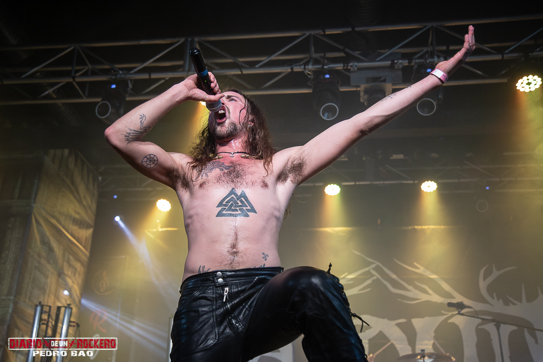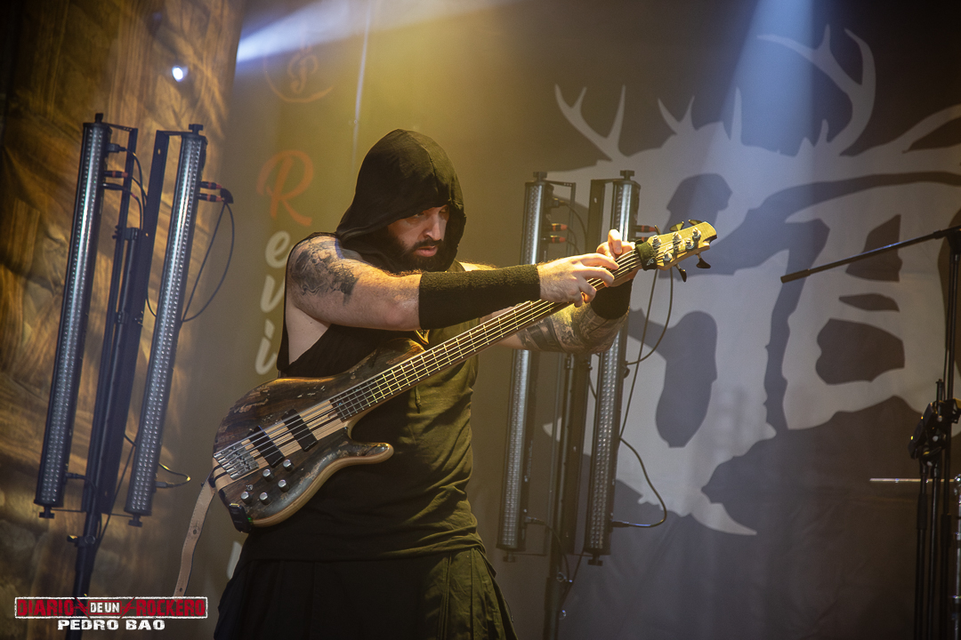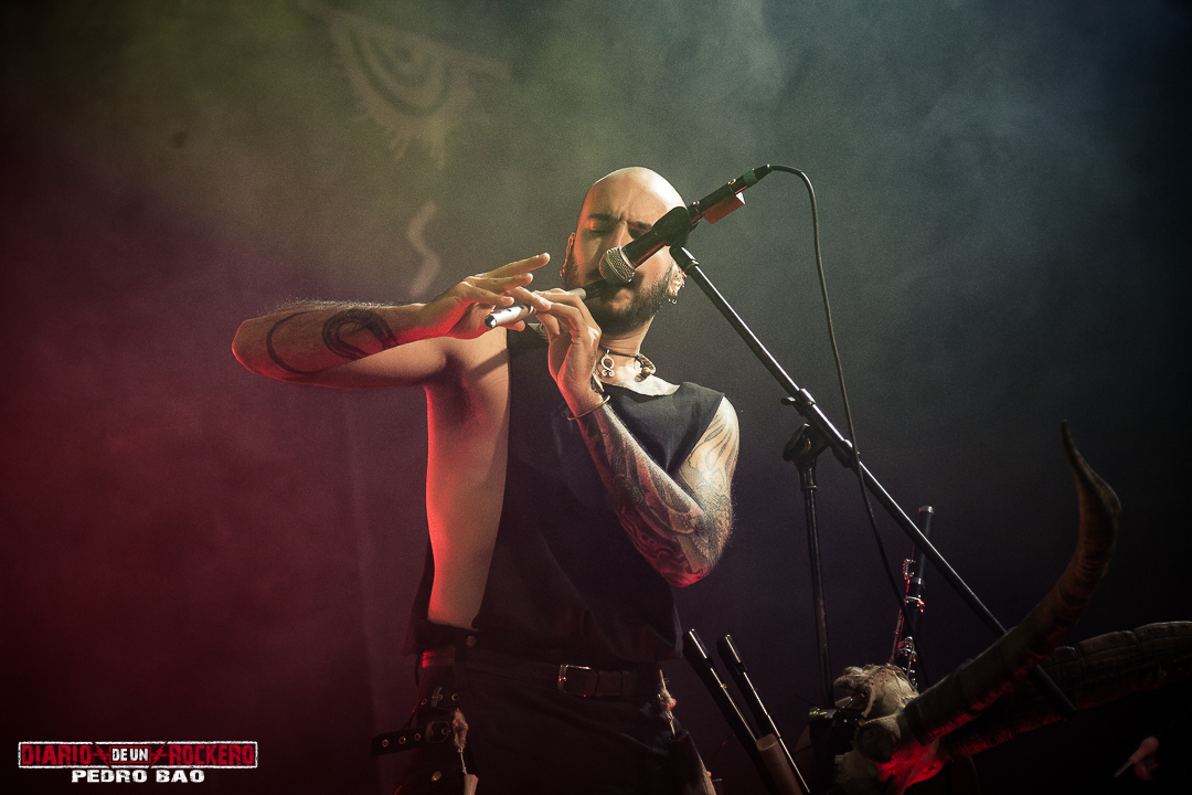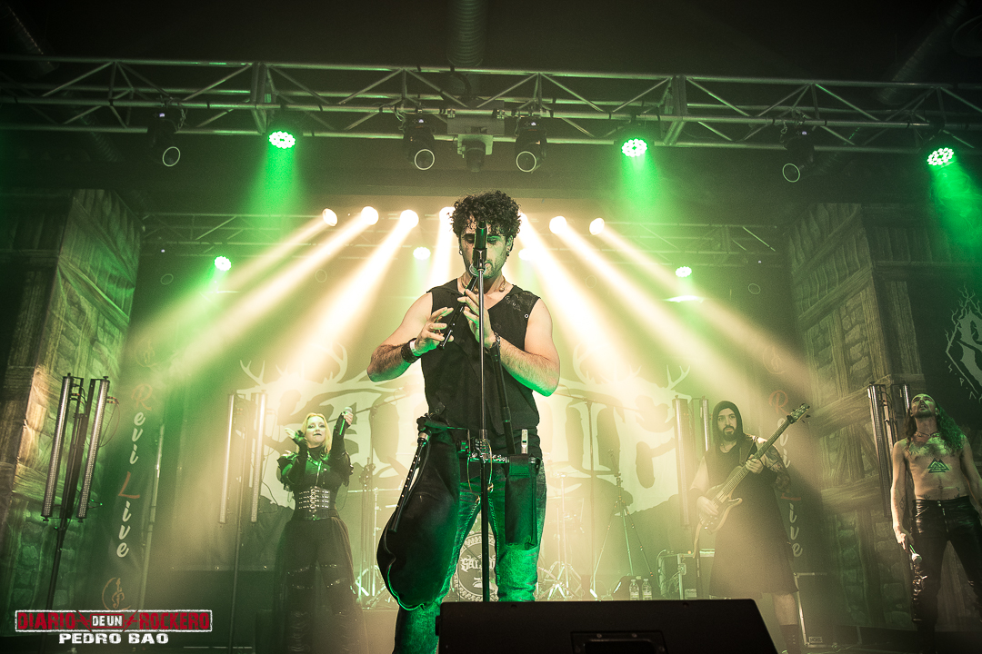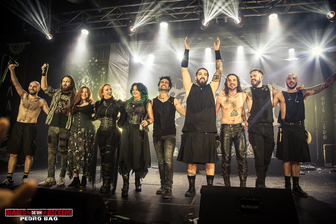 «Invocamos al dios del trueno y la tormenta…» Así presentaba Diego Bernia, «Netón», la cual dice: «Soy Netón, el dios del trueno…» Con ello, él añadió la dimensión más visceral con su voz rasgada llena de guturales. Seguidamente le tocaba el turno a la conocida «Imbolc» con una performance en la que encontrábamos el Onso y la Tranca típicos de los carnavales de Bielsa (Huesca). Otra de las colaboraciones llegaba con Jezabel Martínez de la banda Kinnia, con su aporte al violín en «Caelia», convirtiéndose en la canción más lenta del concierto y de corte pagano, y donde Diego Bernia pasó a la voz melódica y Víctor Felipe al bouzouki. Con ella, llegaba la tercera parte del concierto. A continuación «Ambaxtos», la cual da titulo a su tercer trabajo, contando con Dani Nogués, cantante de Lèpoka a la voz. Fue uno de los momentos más emotivos, ya que Nem comentó, que lo que hay entre ellos dos es una historia de amistad, que nació cuando estaban empezando en la música. Así que, como acto de hermanamiento, le entregó un torque, un collar rígido que entonces simbolizaba el estatus social, militar y poder. «Devotio», perteneciente al álbum debut, «Imbolc», llegaba después también con el mismísimo Dani a la voz. Aquí David Serrano (sección de vientos) pasó a interpretar la dulzaina. Durante «Carus de Sekaiza», se produjo entre el público una batalla de espadas a modo de Circle Pit. Elisabeth Amoedo volvía a la palestra con «El Canto de las Madres». Ésta sería su última aportación al directo. Por consiguiente, Clara Palomares actualmente en Celtibeerian, se incorporaba en «Descarnatio», quien ejecutó la gaita de David Serrano como buen gesto dándole las gracias, porque ella les echó un cable en una época en la que, él se lesionó una pierna. Su instrumento quedó bautizado como la gaita de la amistad.