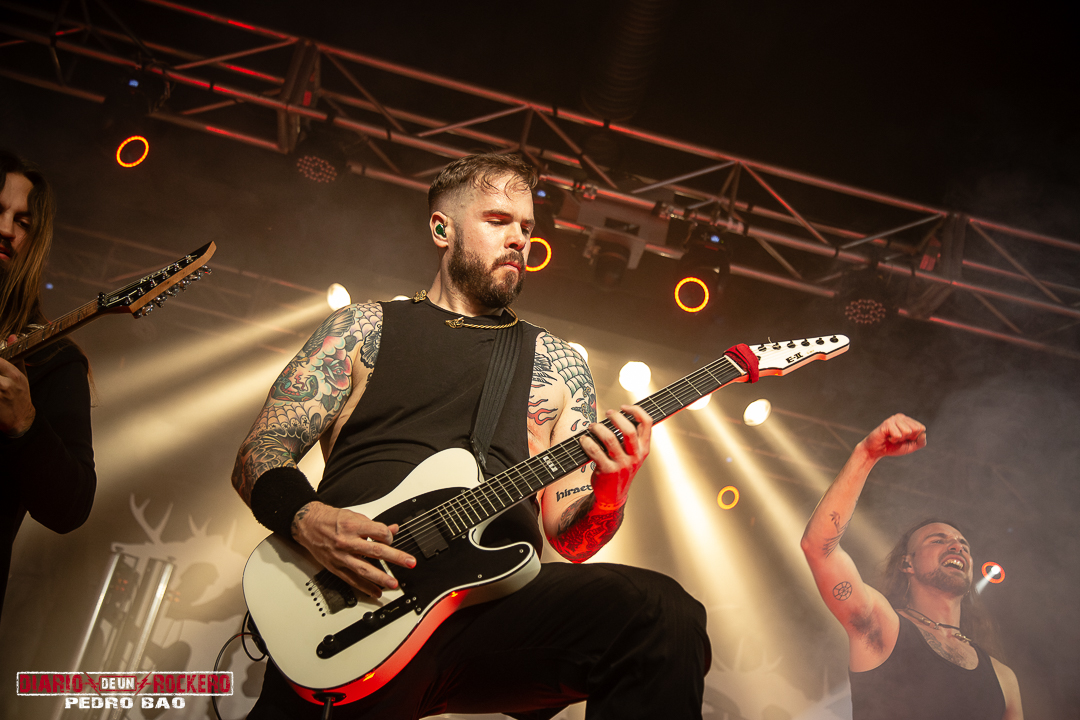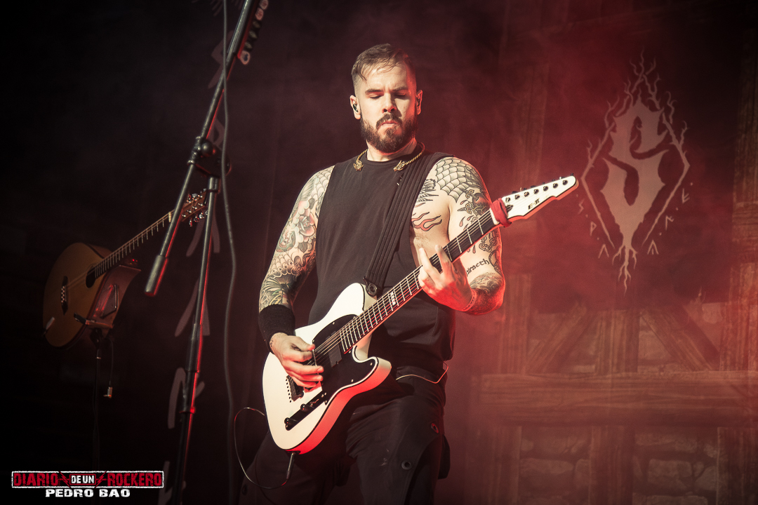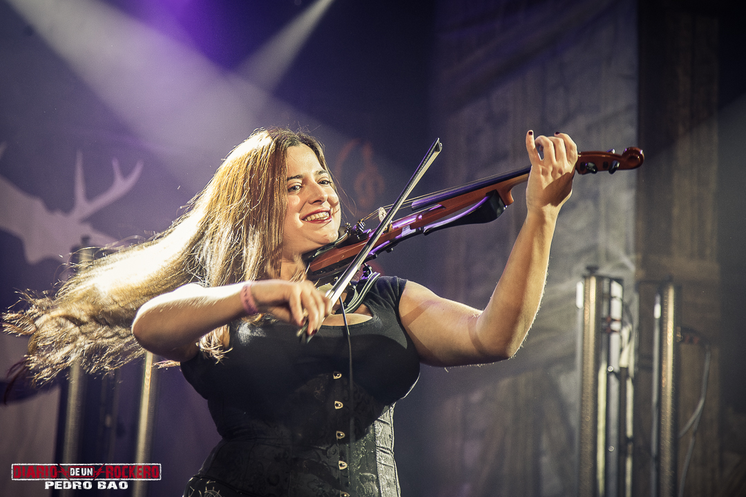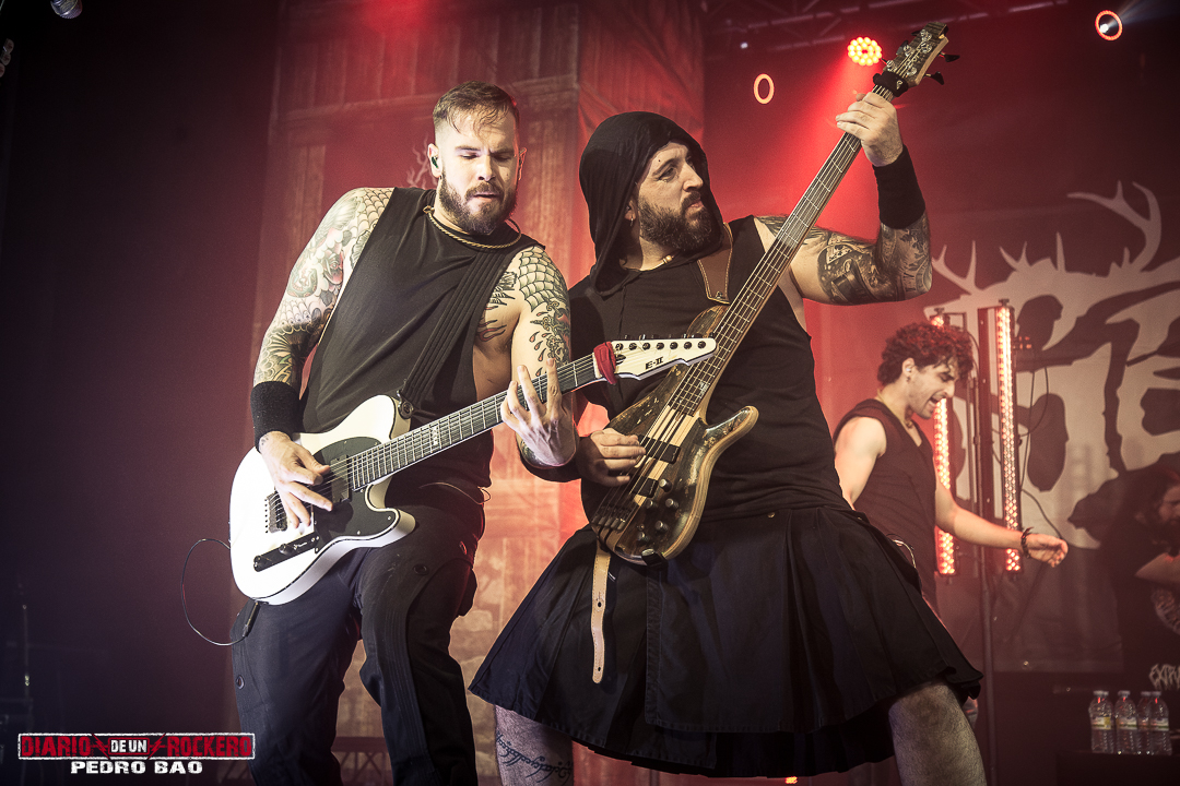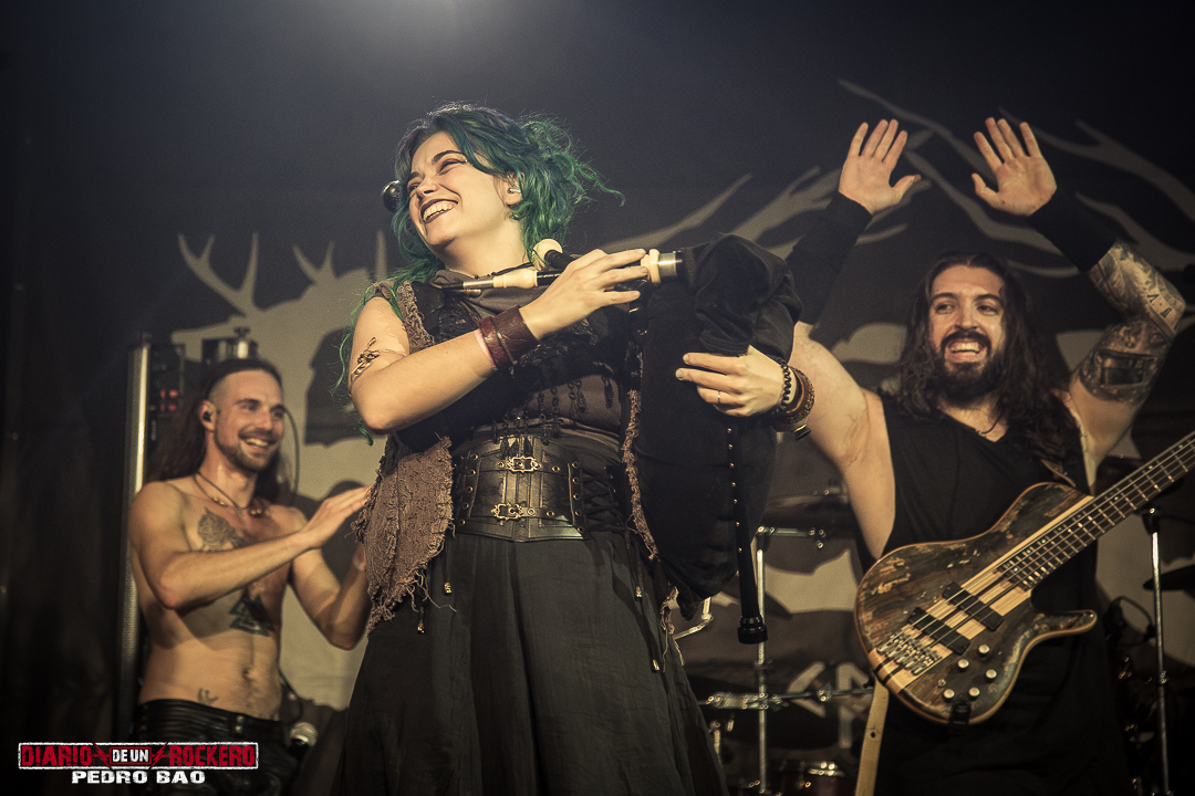 «Invocamos al dios del trueno y la tormenta…» Así presentaba Diego Bernia, «Netón», la cual dice: «Soy Netón, el dios del trueno…» Con ello, él añadió la dimensión más visceral con su voz rasgada llena de guturales. Seguidamente le tocaba el turno a la conocida «Imbolc» con una performance en la que encontrábamos el Onso y la Tranca típicos de los carnavales de Bielsa (Huesca). Otra de las colaboraciones llegaba con Jezabel Martínez de la banda Kinnia, con su aporte al violín en «Caelia», convirtiéndose en la canción más lenta del concierto y de corte pagano, y donde Diego Bernia pasó a la voz melódica y Víctor Felipe al bouzouki. Con ella, llegaba la tercera parte del concierto. A continuación «Ambaxtos», la cual da titulo a su tercer trabajo, contando con Dani Nogués, cantante de Lèpoka a la voz. Fue uno de los momentos más emotivos, ya que Nem comentó, que lo que hay entre ellos dos es una historia de amistad, que nació cuando estaban empezando en la música. Así que, como acto de hermanamiento, le entregó un torque, un collar rígido que entonces simbolizaba el estatus social, militar y poder. «Devotio», perteneciente al álbum debut, «Imbolc», llegaba después también con el mismísimo Dani a la voz. Aquí David Serrano (sección de vientos) pasó a interpretar la dulzaina. Durante «Carus de Sekaiza», se produjo entre el público una batalla de espadas a modo de Circle Pit. Elisabeth Amoedo volvía a la palestra con «El Canto de las Madres». Ésta sería su última aportación al directo. Por consiguiente, Clara Palomares actualmente en Celtibeerian, se incorporaba en «Descarnatio», quien ejecutó la gaita de David Serrano como buen gesto dándole las gracias, porque ella les echó un cable en una época en la que, él se lesionó una pierna. Su instrumento quedó bautizado como la gaita de la amistad.