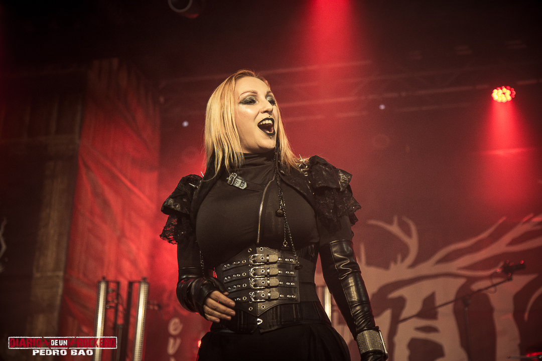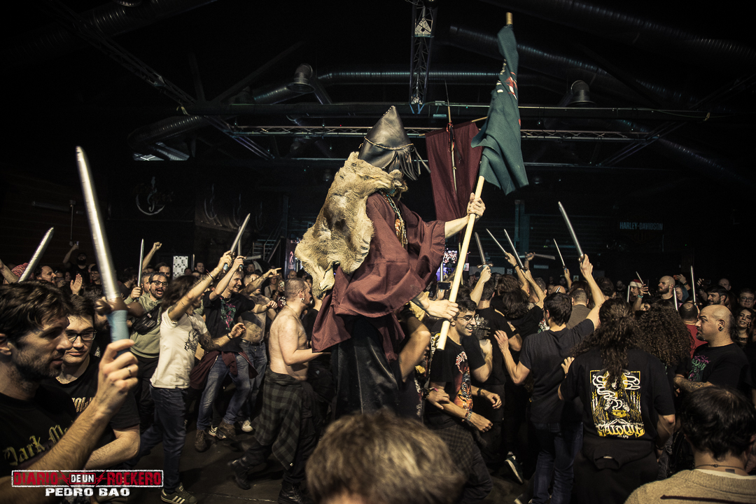 La segunda parte del concierto venía coronada por unas palabras sinceras de Nem (voz melódica): «Que maravilla, que acogida, que maravilla Madrid.» Proseguía Diego Bernia (voz rasgada y guturales): «Diosa del inframundo». Entonces volvímos a ver a Elisabeth Amoedo en «Ateacina» y después en «Lugnasad» (en la versión en CD cuenta con la colaboración de Estefania Aledo de Arise y Mind Driller), donde volvimos a encontrar otra performance. Se trataba de unos sacerdotes celtíberos, que ejecutaron un acto ritual ceremonial de una boda. (A los novios les colocaron una corona de flores en la cabeza). Después llegó el turno de «Sertorio», donde Diego Bernia pedía al público que les acompañara cantando. Y una parte a destacar del tema, son los punteos de bajo en manos de Daniel Galván. Esta canción terminó con unos seguidores que aclamaban Salduie sin cesar.
