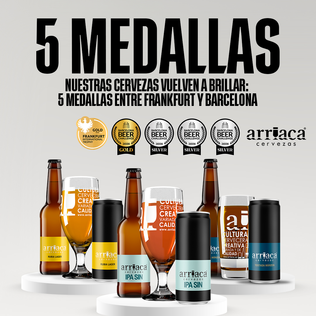 Cuatro de esas medallas han llegado en el Barcelona Beer Challenge 2026, cuya entrega de premios se ha celebrado en el marco del Barcelona Beer Festival, la gran cita anual de la cerveza artesana en el sur de Europa, y que este año celebraba su 15 Aniversario, mientras que la quinta ha sido para la Arriaca IPA SIN en la categoría Ale Session IPA del Frankfurt International Trophy, uno de los certámenes europeos de mayor proyección.