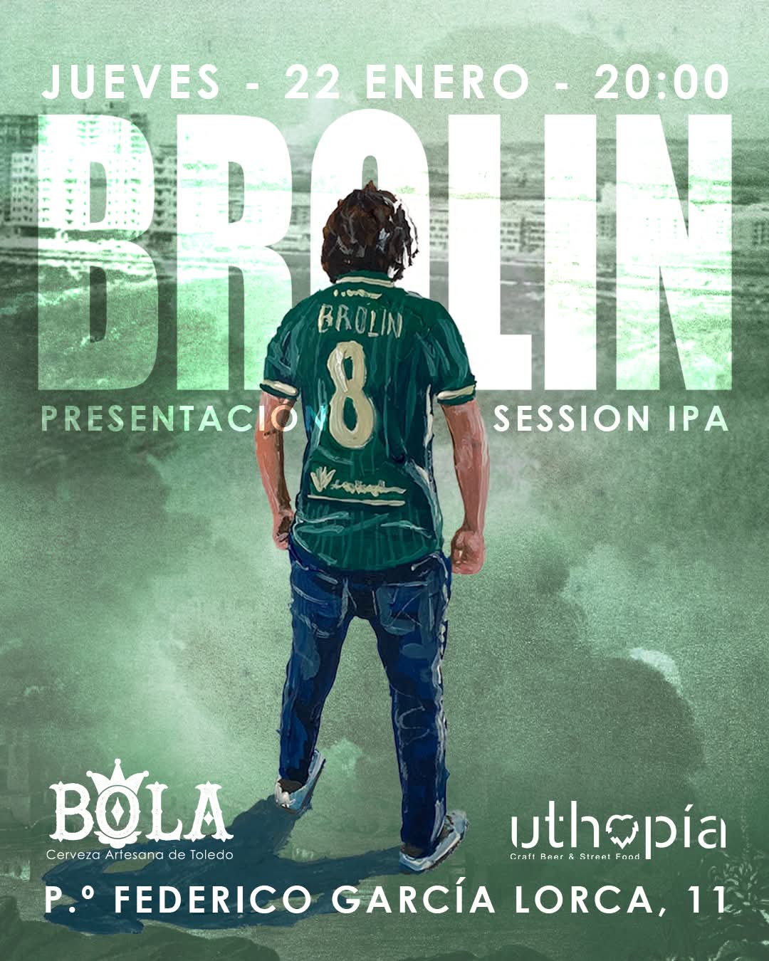 La nueva cerveza artesana que ha eleborado Bola, es una Session IPA de 5,4% volumen de Alcohol. Se llama Brolin, y es un homenaje a Iván Carvajal Jumela «Brolin», futbolista del CD Toledo y gran amigo de la cervecera toledana.