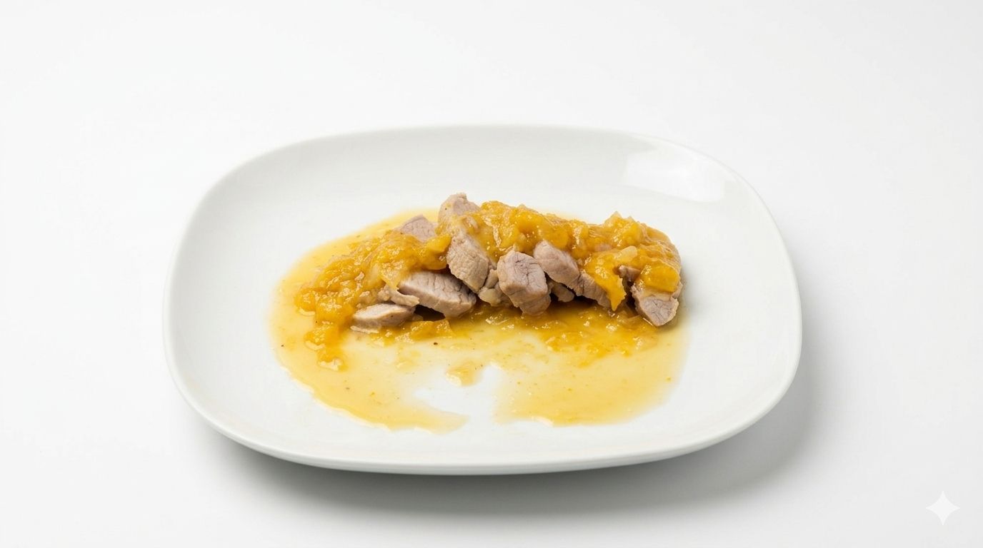 Y cuando ya se haya transparentado, será el momento de incorporar la cerveza artesana. Nosotros y nosotras hemos elegido La Manuela – Session IPA, por sus aromas cítricos y su gusto en boca a mango y piel de limón. Hemos considerado, que encajaría con la carne de cerdo, por ser suave y blanca, ya que no se comerá su sabor. Notarás que queda muy equilibrado. Entonces en este paso, dejamos que el alcohol se evaporadore, dejando un caldo resultante.