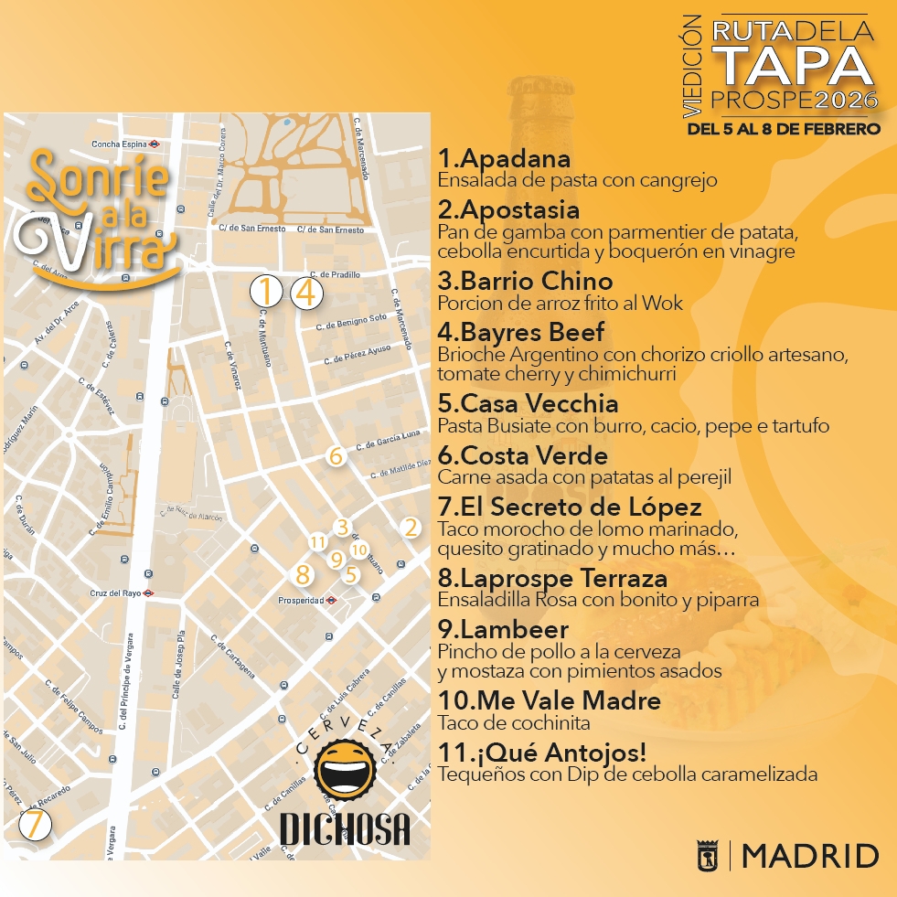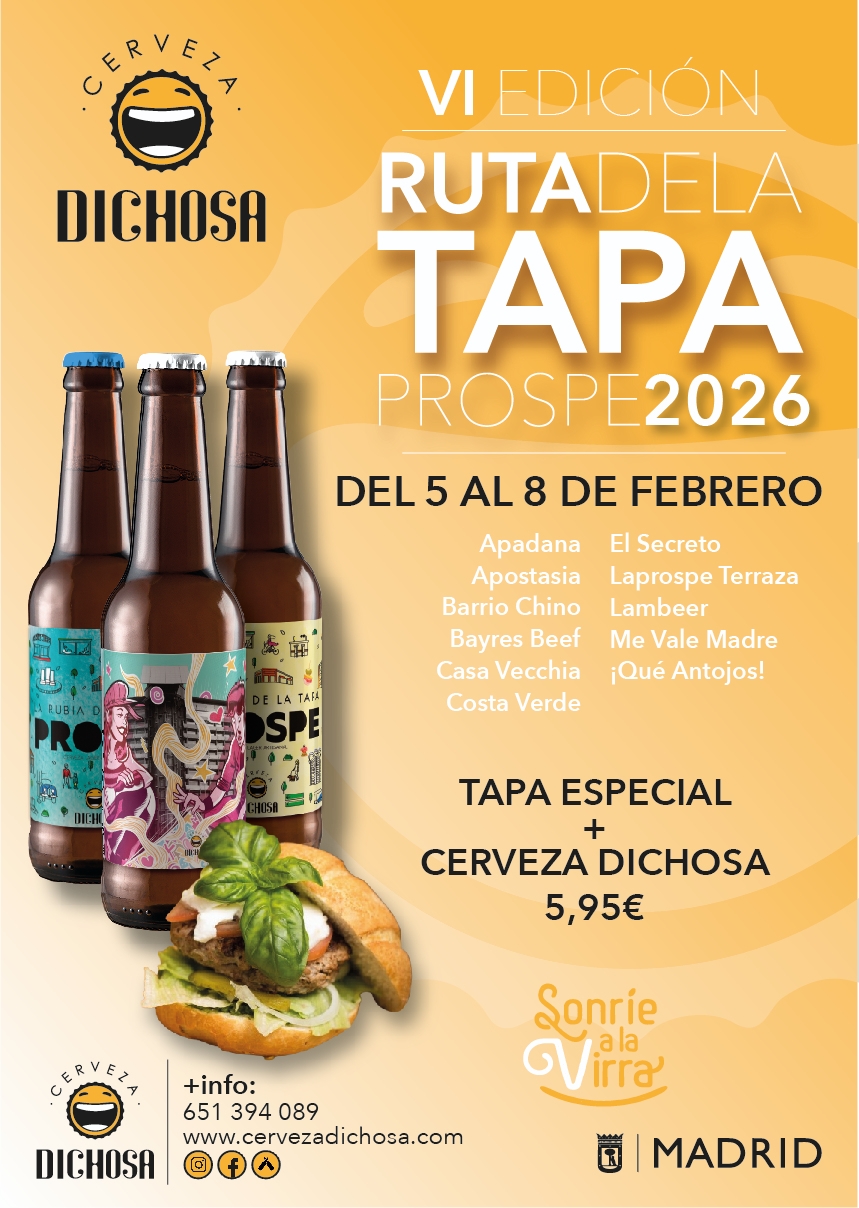 El barrio de Prosperidad, conocido popularmente como Prospe, vuelve a convertirse en uno de los grandes protagonistas gastronómicos de Madrid con la VI Ruta de la Tapa de Prospe, que se celebrará del 5 al 8 de febrero de 2026. Un evento ya consolidado en el calendario cultural y culinario del distrito de Chamartín, que combina tapas creativas, cerveza artesanal y diseño urbano.